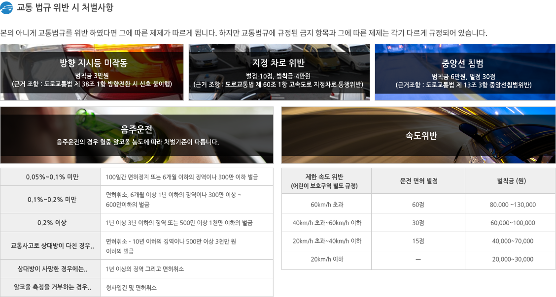 교통법규위반 처벌사항