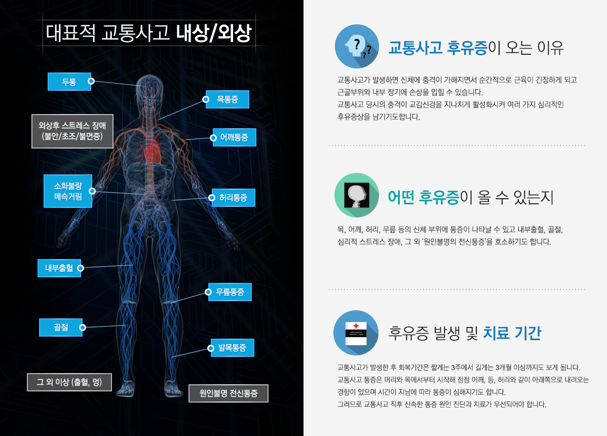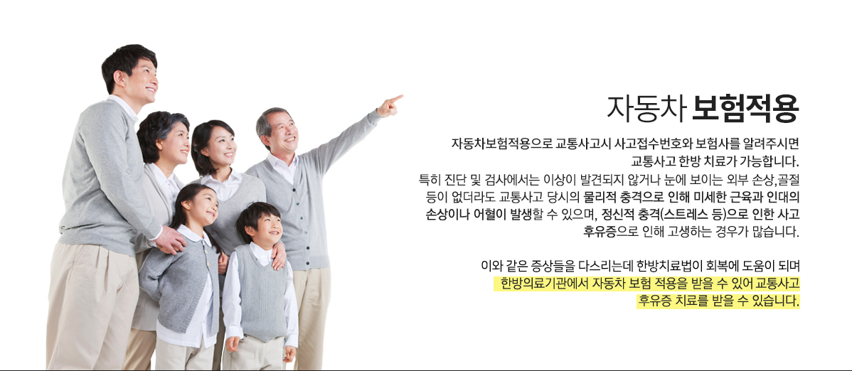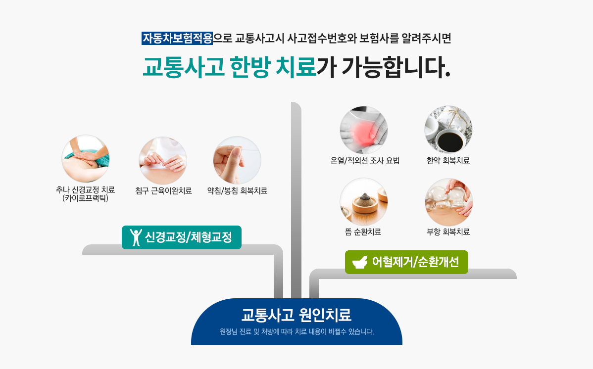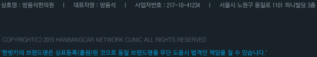 주말, 공휴일 오전 09:30 ~ 오후 04:00 점심시간 오후 01:00 ~ 오후 02:00 ※ 365일 진료 / 평일매일야간진료 / 주말, 공휴일 진료 ※ 한방물리치료실 운영 / 교통사고입원실 운영 |